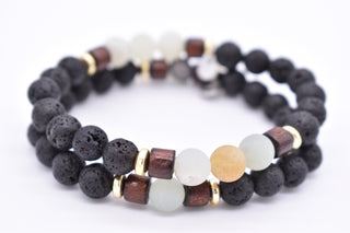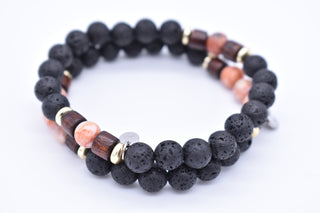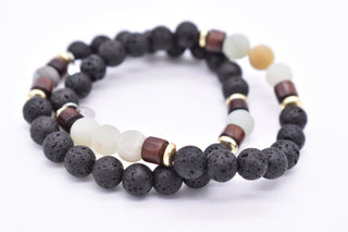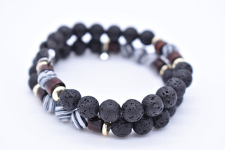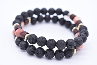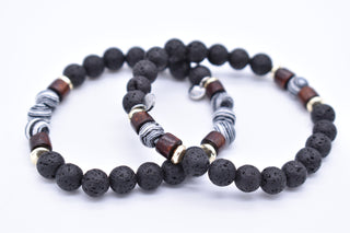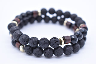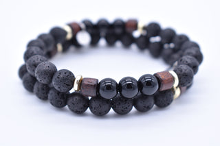 Parisi Armbänder - Lavastein - Schwarze Achat Natursteine - Ringe aus Holz - Frauen - Mann - Herren - Inkl. Weiße Schmuckschachtel