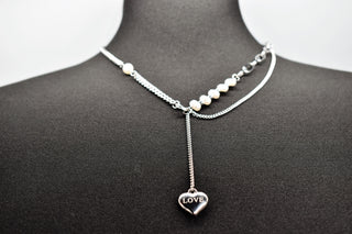 Halskette aus Edelstahl mit Süßwasserperlen und herzförmigem Anhänger, für Frauen