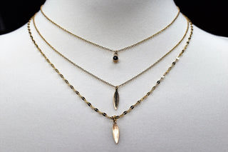 Modische Multi Layer Halskette aus Titan Stahl, mit Feder Anhänger und einem schwarzen Zirkon, für Frauen